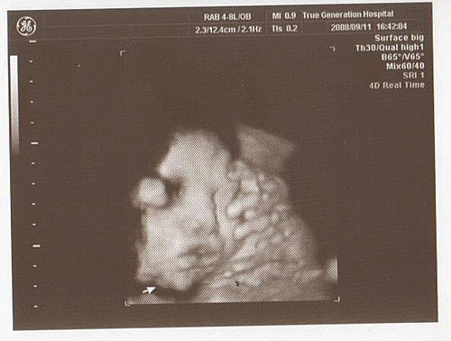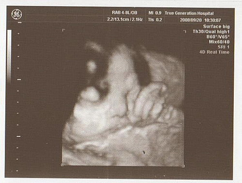 但寶寶的臉仍被胎盤擋住